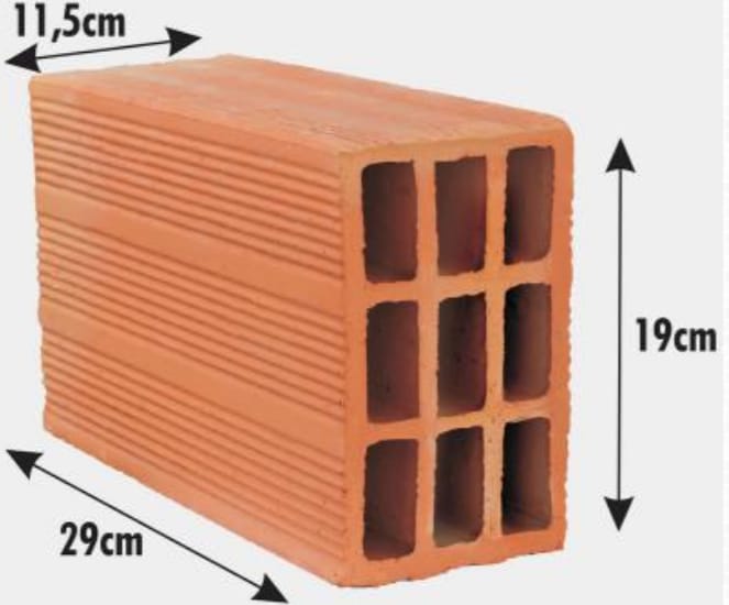 Esse é um modelo de tijolo com um custo benefício melhor. Ele é muito utilizado na construção de muros e alvenaria da construção. Mas isso pode mudar dependendo da ocasião, da construção, do pedreiro e do Engenheiro.